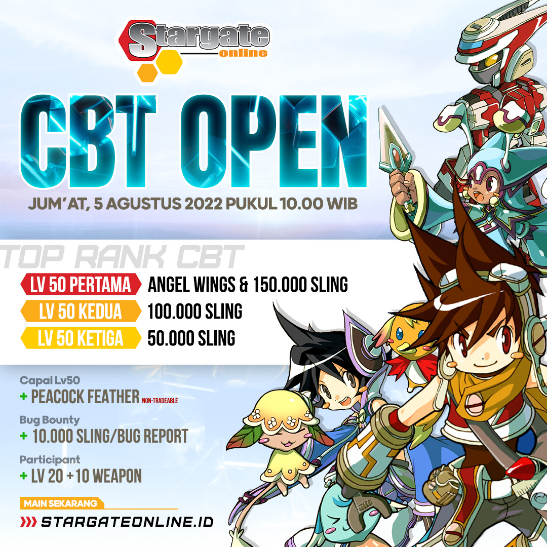 Hi Stargaters, Kabar gembira untuk kalian yang sudah menantikan untuk memainkan game ini seajak lama! Close beta period akan dimulai pada Jumat 5 Agustus 2022 Jam 10 pagi. Kalian dapat mendaftarkan akun kalian pada web stargateonline.id pada menu register pada tanggal 2 Agustus 2022. Pada tanggal yang sama, kalian juga akan dapat melakukan download client dari Stargate Online Indonesia Reborn, namun masih belum dapat dfmainkan sekelum tanggal 5 Augustus jam 10 pagi.